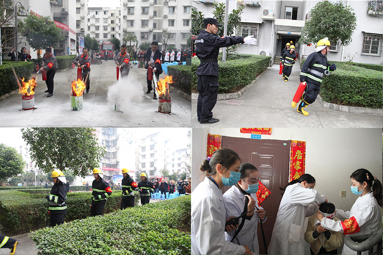 下午3點,“報告總指揮一棟一單元發(fā)生火情...”隨著對講機里傳來火情通知,各應急小組聞訊而動啟動消防應急預案,滅火組持滅火器火速趕往火災現場對大火進行撲救,警戒組迅速展開警戒對火場附近進行封鎖管制控制人員圍觀和進入造成傷亡,疏散組持喊話器將樓內及周邊群眾進行緊急疏散避免擁擠造成踩踏等二次傷害、工程組持工程工具進場接通消防栓切斷電源和火源防止火勢繼續(xù)蔓延、醫(yī)療組也乘救護車緊急到達現場對樓內傷員進行包扎救治并使用擔架抬出重傷病號。最終樓內群眾全部撤出,傷員得到及時救治和轉移,“火情”得到有效控制。
