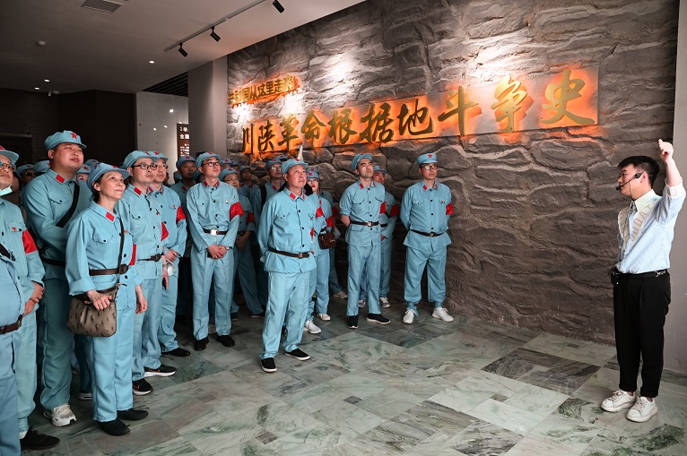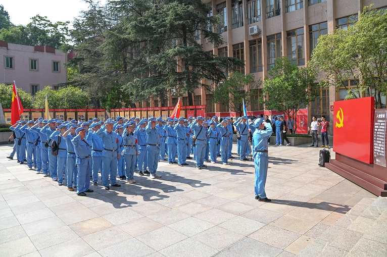5月8日上午,集團領導、全體黨員、中層以上干部身著紅軍服,來到位于巴州區(qū)的川陜革命根據(jù)地博物館,“12萬巴山兒女參加紅軍,4.8萬人英勇犧牲......”大家跟隨講解員仔細聆聽中國工農紅軍第四方面軍將士的豐功偉績,感受他們堅定革命信仰、勇往直前、不畏犧牲的革命精神?!拔抑驹讣尤胫袊伯a(chǎn)黨,擁護黨的綱領......”在川陜革命根據(jù)地博物館文化廣場,全體黨員在集團黨委書記周述軍的帶領下整齊列隊,高舉右拳、莊嚴重溫入黨誓詞,更加堅定“聽黨話、跟黨走”的信念。