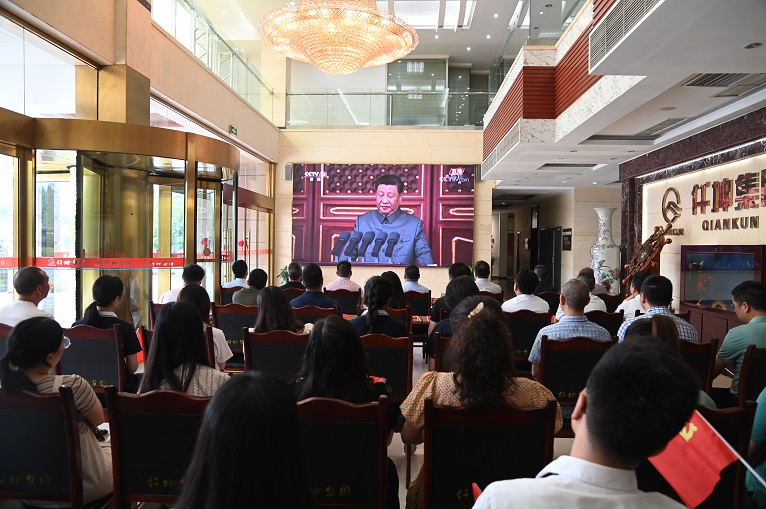 集團(tuán)董事長謝世千、集團(tuán)總裁謝澤波,及集團(tuán)領(lǐng)導(dǎo)層,帶領(lǐng)集團(tuán)部分黨員、職工代表在集團(tuán)一樓大廳觀看了大會(huì)的盛況,感受中國共產(chǎn)黨百年輝煌奮斗史,聆聽習(xí)近平總書記重要講話,奮進(jìn)新征程。
