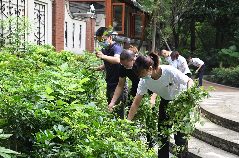 上午,烈日當(dāng)空,黨員志愿者們和青年志愿者們兵分幾路開始清潔家園,大家分工明確,積極投身到活動中去,有的在綠化帶內(nèi)拾撿枯枝,有的對隱藏在綠化帶里的雜草、紙屑等進(jìn)行全方位清潔,大家發(fā)揚不怕苦不怕累的精神,干得熱火朝天,經(jīng)過兩個多小時的衛(wèi)生清掃,使小區(qū)更加漂亮,路過的業(yè)主們紛紛豎起大拇指點贊,讓黨旗在基層一線高高飄揚。