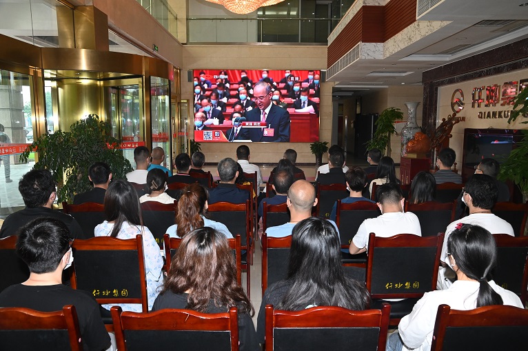 5月27日上午9時,中國共產(chǎn)黨四川省第十二次代表大會在成都隆重開幕。集團(tuán)董事長謝世千、總裁謝澤波帶領(lǐng)黨員干部職工在集團(tuán)一樓大廳通過網(wǎng)絡(luò)直播的形式收看了大會開幕盛況,第一時間學(xué)習(xí)領(lǐng)會精神實質(zhì),推動大會精神在集團(tuán)落地生根、開花結(jié)果。