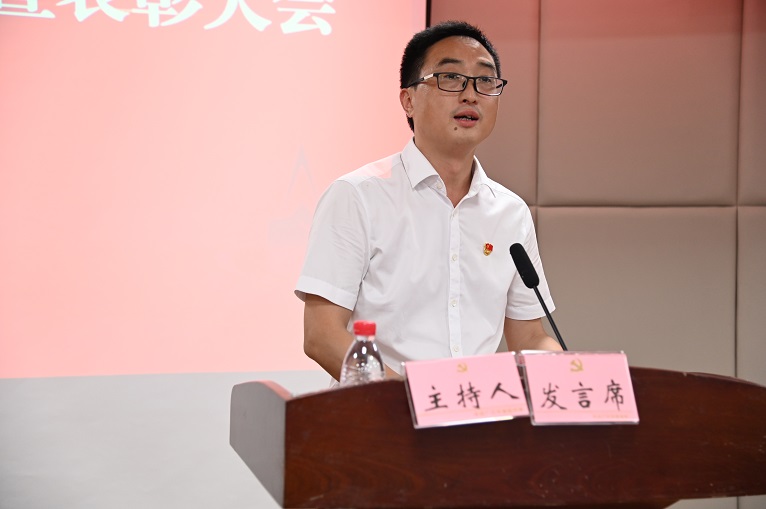 大會開始時在黨委書記周述軍的領(lǐng)誓下,2022年新發(fā)展黨員代表高舉右拳,面對鮮紅的黨旗莊嚴宣誓。周書記總結(jié)了2021—2022年度黨建工作情況,表彰優(yōu)秀共產(chǎn)黨員、優(yōu)秀黨務(wù)工作者、先進黨支部,為12個2022--2023年度創(chuàng)先爭優(yōu)示范集體和示范個人授牌,并為重新組建的“籃球隊”、“足球隊”進行隊旗授旗儀式。