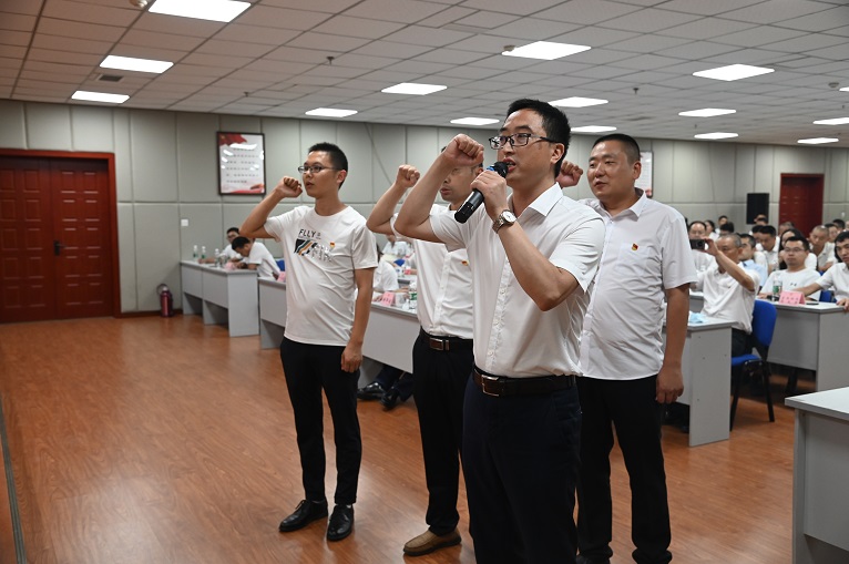▲集團黨委書記周述軍帶領(lǐng)預(yù)備黨員宣誓▲