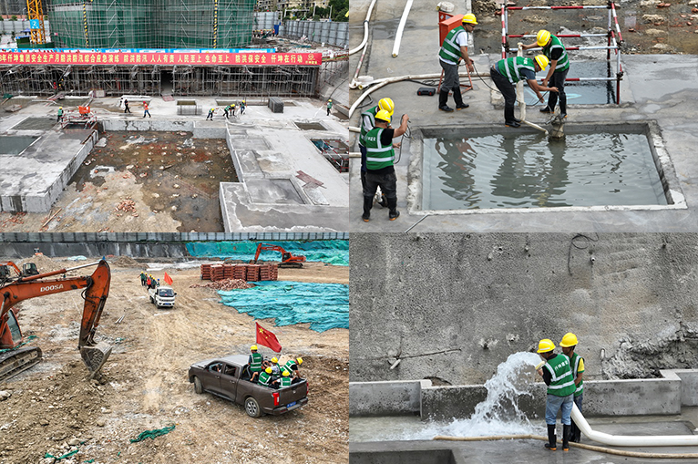 “報(bào)告總指揮由于雨量過(guò)大,導(dǎo)致市政雨水管網(wǎng)倒灌...”在報(bào)告聲中防汛演練正式拉開(kāi)帷幕。警報(bào)響起,疏散組持警戒帶迅速行動(dòng)快速封鎖現(xiàn)場(chǎng),醫(yī)療救護(hù)組配合搶險(xiǎn)救援小組搬運(yùn)受傷人員。與此同時(shí)電力搶修、物資轉(zhuǎn)移、搶險(xiǎn)排水三個(gè)小組同時(shí)進(jìn)場(chǎng),在成功恢復(fù)臨時(shí)用電后,便立即開(kāi)始安裝水泵、鋪設(shè)水管、電纜進(jìn)行排水。在大家的共同努力與配合協(xié)作之下,“汛情”得到了有效的控制。演練圓滿結(jié)束。