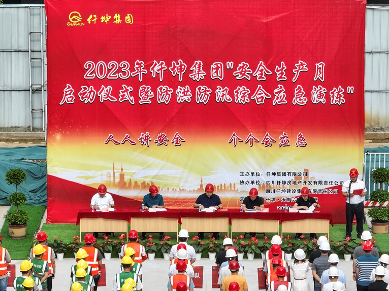 仟坤集團(tuán)為扎實(shí)開(kāi)展全國(guó)第22個(gè)安全生產(chǎn)月活動(dòng),落實(shí)國(guó)務(wù)院安委會(huì)辦公室、應(yīng)急管理部關(guān)于印發(fā)《2023年全國(guó)“安全生產(chǎn)月”活動(dòng)方案》“人人講安全 個(gè)個(gè)會(huì)應(yīng)急”活動(dòng)主題,進(jìn)一步提升全集團(tuán)安全意識(shí)和避險(xiǎn)逃生能力。6月6日上午,由仟坤集團(tuán)主辦,仟坤建設(shè)、仟坤房產(chǎn)承辦的“2023年仟坤集團(tuán)安全生產(chǎn)月啟動(dòng)儀式暨防洪防汛綜合應(yīng)急演練”在仟坤天朗6期項(xiàng)目工地隆重開(kāi)展,集團(tuán)總裁謝澤波、集團(tuán)高層領(lǐng)導(dǎo)及各分(子)公司總經(jīng)理安全負(fù)責(zé)人共82人參與了演練的觀摩。