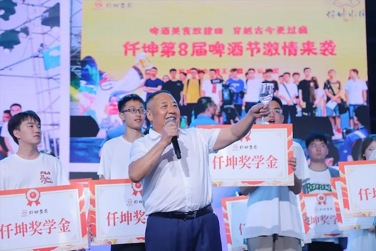 “仟坤小業(yè)主獎學(xué)金”的頒發(fā)是仟坤啤酒節(jié)的重要環(huán)節(jié)。今年一共有177位小業(yè)主,總計發(fā)放獎學(xué)金31萬元。仟坤集團董事長謝世千向?qū)W子們送上滿滿的祝福,愿他們胸懷大志自強自立,譜寫新時代的青春之歌,實現(xiàn)人生更大價值。同時回顧了仟坤集團的發(fā)展歷程,堅定了對未來發(fā)展的信心和期許。小業(yè)主代表也進行了慷慨激昂的演講,整個現(xiàn)場氣氛溫情且動容,全場舉杯共飲!