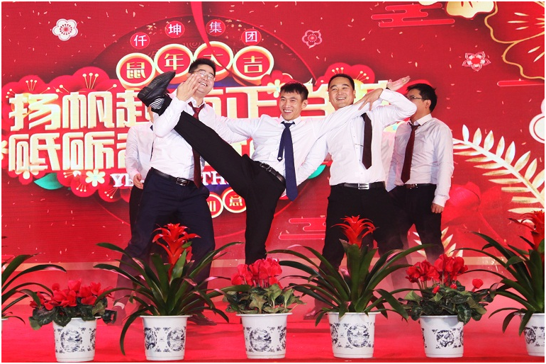 總結(jié)大會(huì)結(jié)束后,仟坤集團(tuán)首屆年會(huì)也正式拉開(kāi)帷幕,進(jìn)入會(huì)場(chǎng)前,禮儀小姐為來(lái)賓獻(xiàn)上印有仟坤logo的紅色圍巾,簽名墻前的來(lái)賓有說(shuō)有笑,現(xiàn)場(chǎng)氣氛歡樂(lè)祥和。在一陣歡快的燈光秀后,年會(huì)正式開(kāi)始。今年年會(huì)的所有節(jié)目,都是由集團(tuán)的職工精心編排,從基層車(chē)間技術(shù)工人到分公司總經(jīng)理、集團(tuán)總裁都登臺(tái)表演,是一場(chǎng)全民聯(lián)歡、密切職工與領(lǐng)導(dǎo)關(guān)系、拉近心與心的距離的年會(huì),節(jié)目?jī)?nèi)容豐富多彩、妙趣橫生。中途穿插幸運(yùn)抽獎(jiǎng),現(xiàn)金紅包、帶薪假券、禮品盒等豐富的獎(jiǎng)項(xiàng),將現(xiàn)場(chǎng)氛圍推向高潮。臨近年會(huì)尾聲董事長(zhǎng)帶領(lǐng)集團(tuán)管理層,為全體員工送上了新春最美好的祝愿,全場(chǎng)一片掌聲和歡呼。