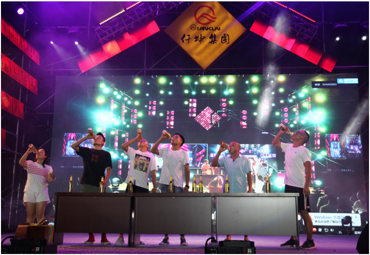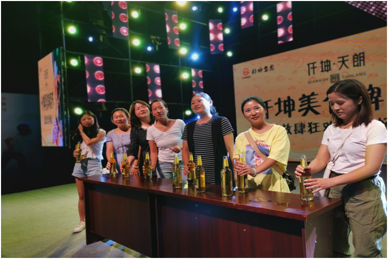 “六位啤酒一個(gè)組,兩瓶啤酒,誰最快飲下,誰就是冠軍!前三名獎(jiǎng)品豐厚哦。”主持人向現(xiàn)場(chǎng)觀眾介紹著啤酒大賽的規(guī)則?,F(xiàn)場(chǎng),貴州安順和綿竹兩地同時(shí)舉行啤酒節(jié),當(dāng)互動(dòng)屏幕打開時(shí),兩地參賽者同時(shí)舉起酒瓶開始比拼模式,雖隔著屏幕,亦能感受激烈精彩的氛圍。“加油,雄起……”臺(tái)下兩地觀眾不停地為臺(tái)上的參賽選手鼓勁、打氣。“16秒,我們的冠軍產(chǎn)生啦!啤酒大人李文僅用了8秒就喝完了一瓶750ml的啤酒,兩瓶酒16秒就喝完了,真是高手在民間啊。”伴隨著主持人宣布大賽的成績(jī),大家都舉起手中的酒杯,為冠軍喝彩。被盛邀參加啤酒節(jié)的貴州安順人楊昌倫表示,仟坤集團(tuán)特意邀請(qǐng)了貴州安順的業(yè)主和表演團(tuán)隊(duì)來到綿竹,兩地同時(shí)舉行啤酒節(jié),現(xiàn)場(chǎng)互動(dòng),既豐富了本地的文化生活,又吸引了很多外地朋友,讓更多的人了解仟坤,仟坤有實(shí)力,作為業(yè)主感到自豪。