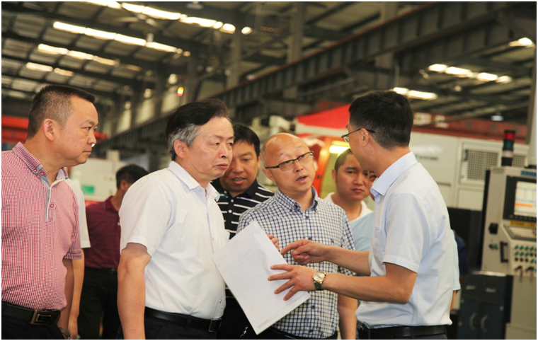 代表們先后對集團陳列室,鑫坤機械重機、葉片、汽配三大車間生產線進行參觀,集團黨委書記、副總裁周述軍向各位代表介紹了鑫坤機械發(fā)展情況、技術創(chuàng)新和銷售情況。在車間現(xiàn)場,代表團一行參觀了鑫坤機械從德國、意大利引進的高技術生產線,給各位領導留下了深刻印象。